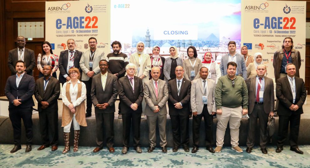 CAIRO – Following on the agreement signed between the Arab States Research and Education Network (ASREN) and the Egyptian Academy for Scientific Research and Technology (ASRT) responsible for the Egyptian National Scientific & Technical Information Network (ENSTINET), and as concrete step, ASRT hosted ASREN’s 12th Annual Conference e-AGE22, which was conducted very successfully in Cairo 13-14 December 2022.
