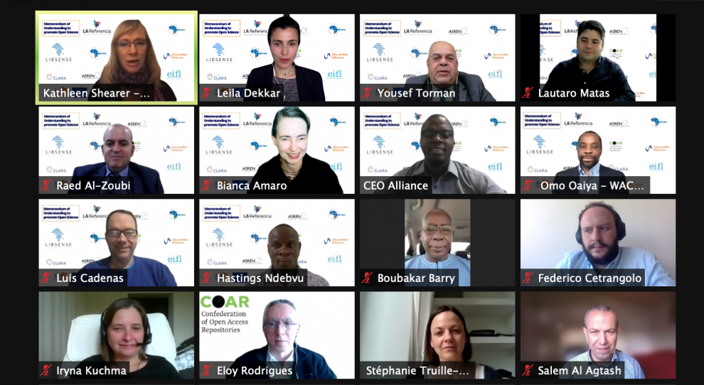 April 12, 2021 – Today, LA Referencia, RedCLARA and the three African regional research and education networks – ASREN, WACREN and UbuntuNet Alliance – signed a Memorandum of Understanding (MoU) to formalize their relationship as the two continents seek to ramp up their open science activities. The aim of the collaboration is to advance open science policies, services and infrastructure that reflect the unique needs and conditions of each continent within a framework of international cooperation.