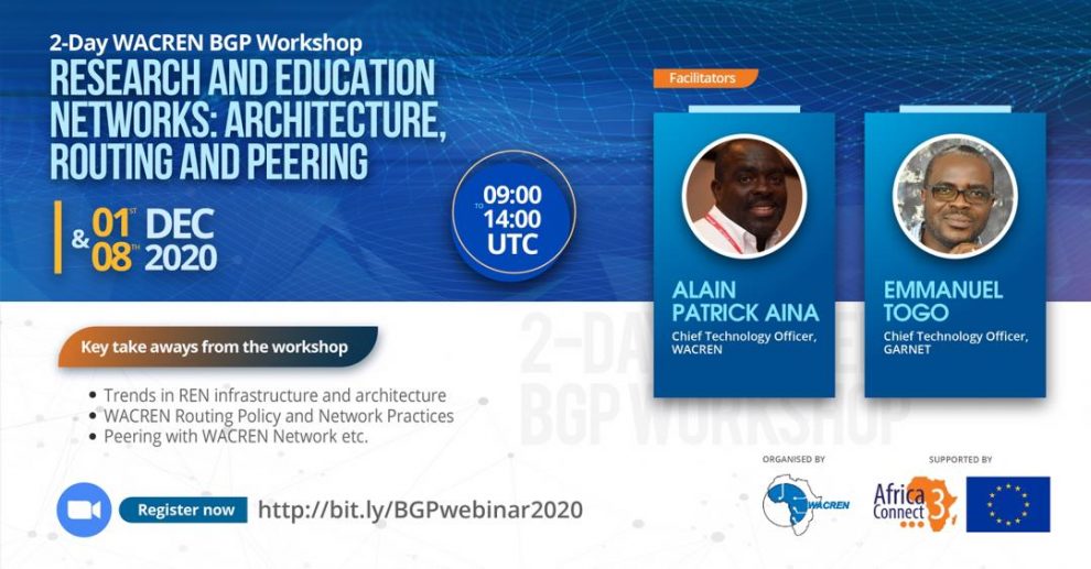 WACREN invites all chief technologists, network engineers, campus network administrators across and beyond the West and Central African region to a two-day online workshop on Research and Education Network (REN) Architecture, Routing, and Peering.