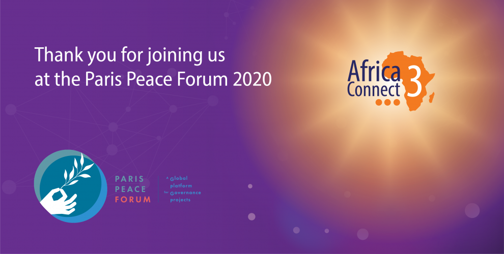 After a competitive selection process with over 850 applications, the AfricaConnect3 project was selected as one of the 100 projects to be showcased at the third edition of the Paris Peace Forum 2020. It was a fine opportunity to share with the world about how the EU and Africa are collaborating to bridge the digital divide in Africa by extending reliable, high speed connectivity and accompanying services to African education space. The Forum was also an invaluable chance to meet and interact with donor-organisations and like-minded partners and collaborators interested in coming onboard in various ways to help connect Africa to unlimited possibilities.